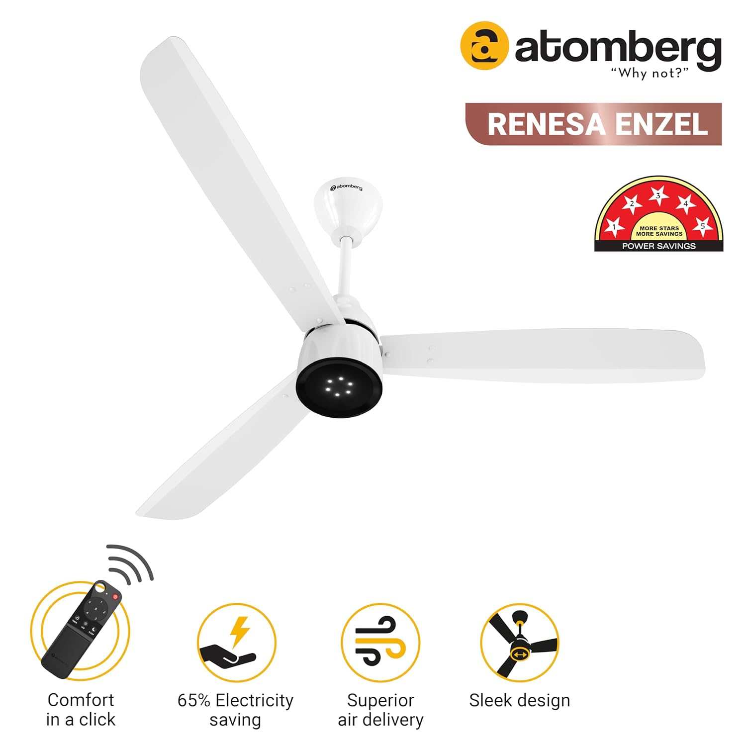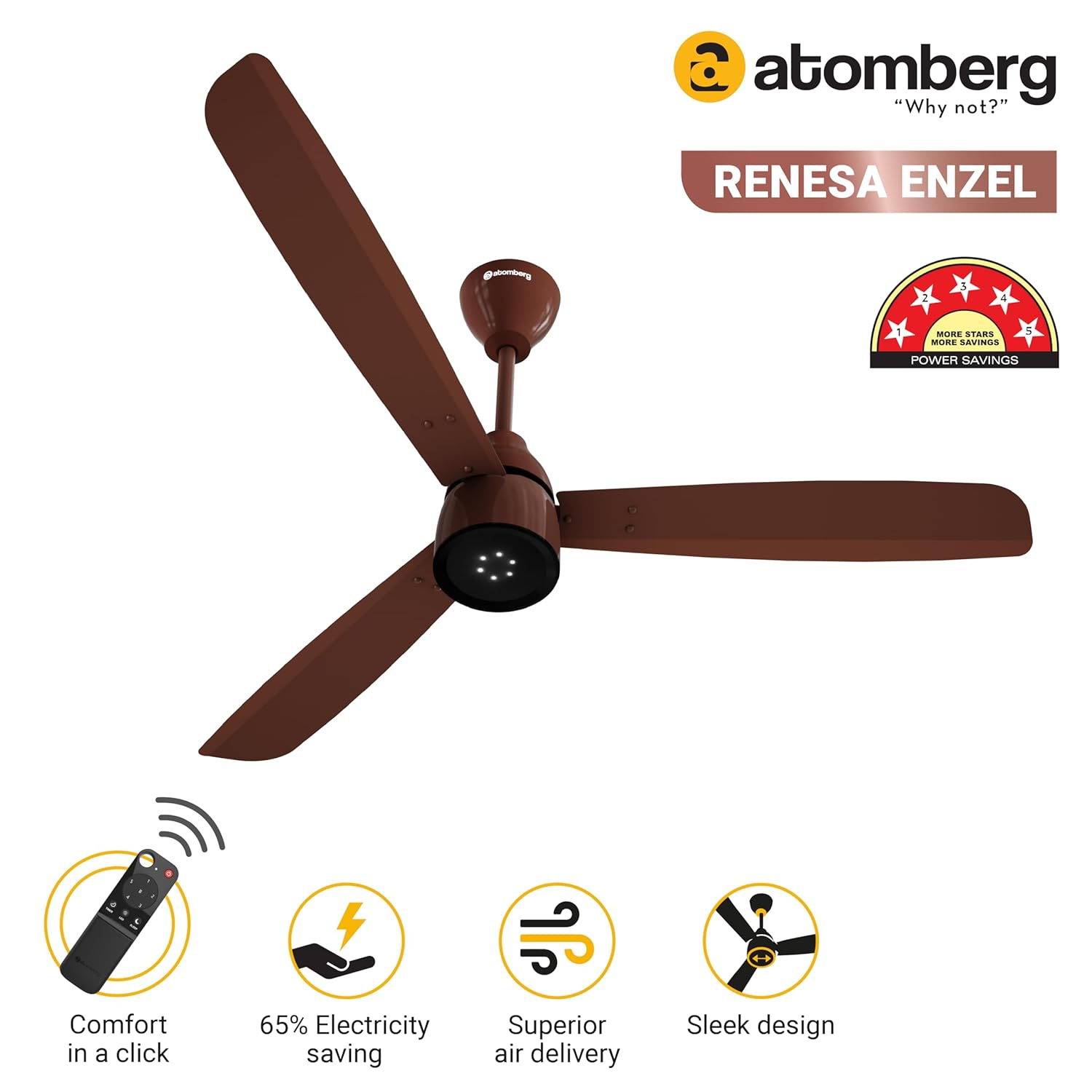 the Atomberg Renesa Ceiling Fan – a perfect blend of style, efficiency, and durability. With a sleek design, a powerful BLDC motor, a 5-star energy rating, and the convenience of remote control, the Renesa is a smart addition to your home. Backed by a reassuring 3-year warranty, this fan redefines your expectations for comfort and reliability.