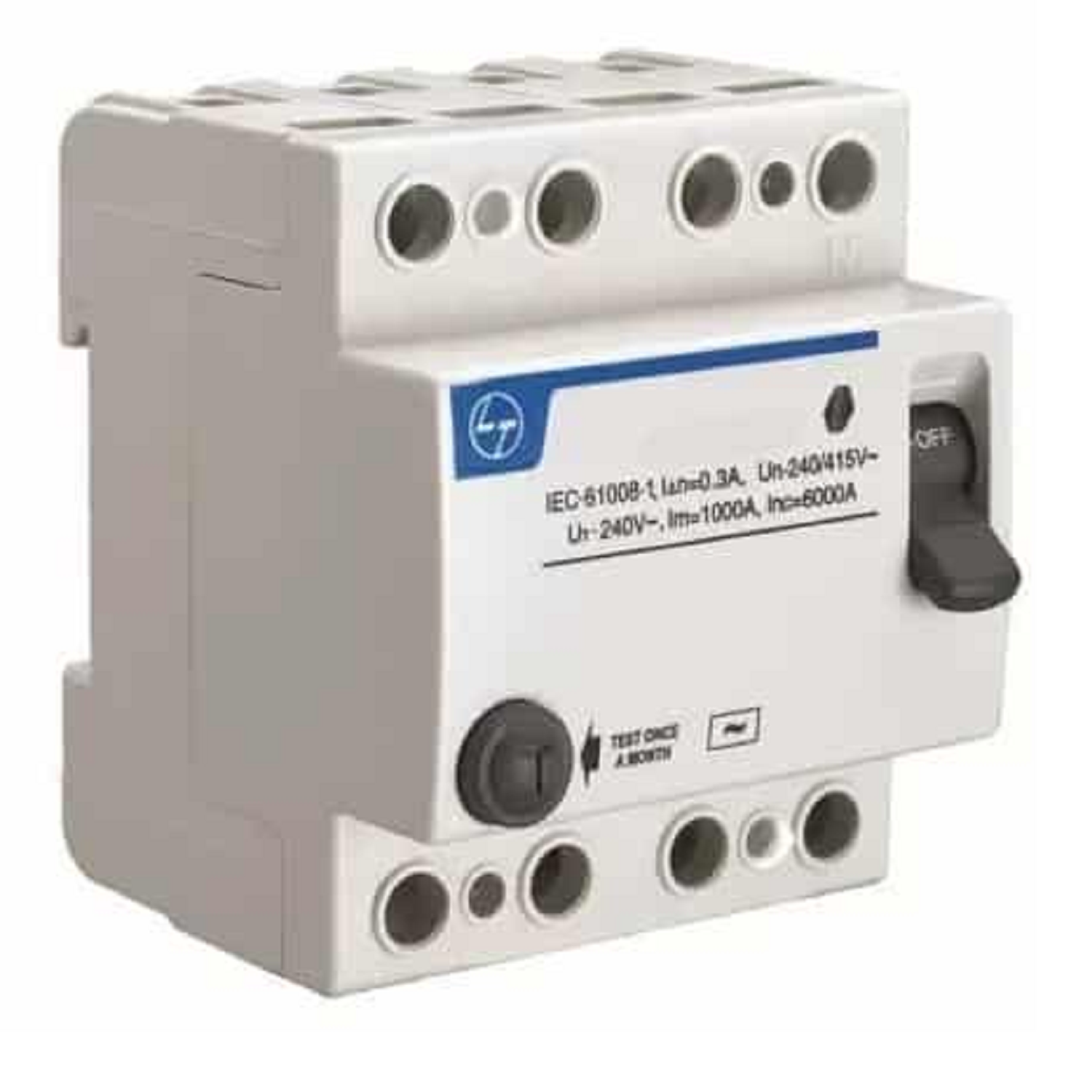 This 63 Ampere 30mA Four Pole Residual Current Circuit Breaker (RCCB) or Earth Leakage Circuit Breaker (ELCB) from the house of L&T is made of high quality Halogens free plastic material that ensures the protection from the risks of electrical shocks