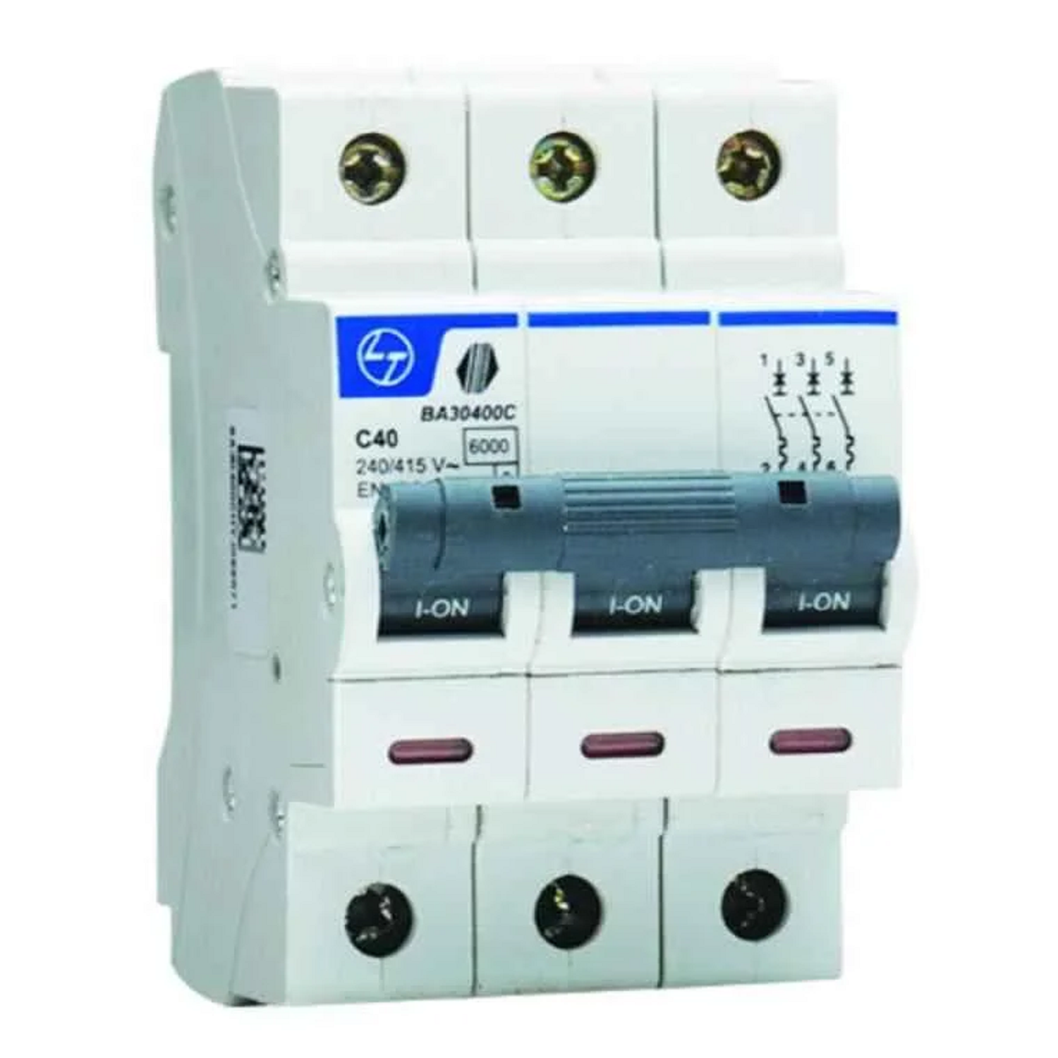 The L&T (10K) 63 Ampere 3-Pole MCB is a vital protection device. It is essential in every electrical installation to safeguar d both your life and valuable property against short circuit and overload. it's Breaking capacity of 10 kA - better protection for cables and equipment Tripping curves B, C & D Energy limitation Class 3 allows low let-through energy in the system Unique patented design gives both label holder and true contact indication facility for individual poles Low watt loss - almost 50% of the values prescribed by saves energy Trip free mechanism to ensure maximum safety Design based on advanced current limiting hammer trip mechanism ensures quick breaking.