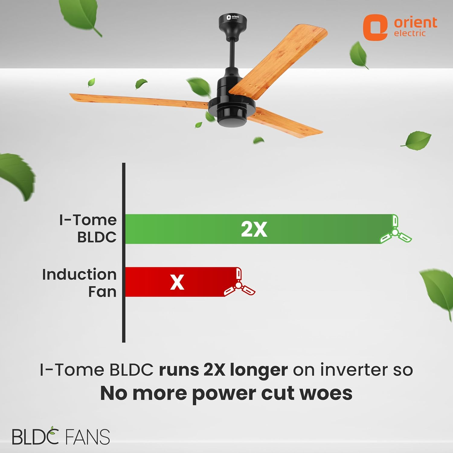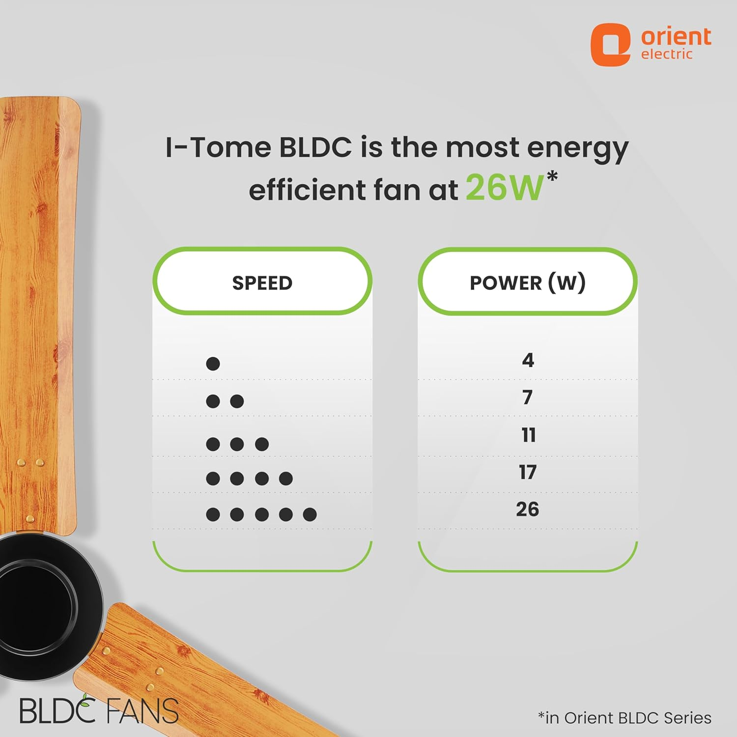 the Orient Electric I-Tome 1200mm Ceiling Fan. Engineered for efficiency and convenience, this intelligent BLDC fan offers a perfect blend of cutting-edge technology and elegant design